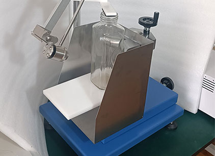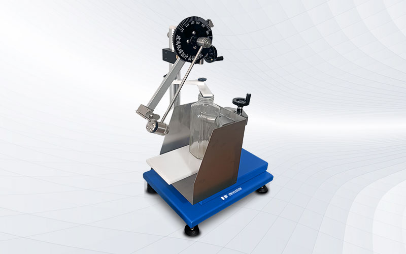將試樣放置在支撐臺上,緊靠后支座。上下調節支撐臺,將打擊部位調節到需要檢測的部位,再在水平向調節支撐臺,使擺處于自由靜止狀態而打擊物則輕微觸及試樣表面。以規定的沖擊能量重復打擊瓶身周圍相距約120°的三個點,檢查瓶子有無破壞。