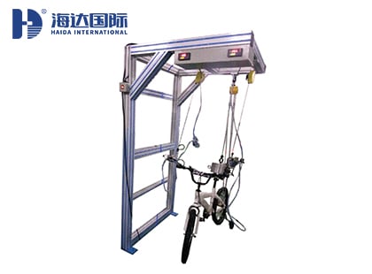 海達(dá)儀器HD-J230自行車(chē)閘皮試驗(yàn)套具主要測(cè)試自行車(chē)整車(chē)的閘皮、閘盒強(qiáng)度,具體為于鞍座上放置100KG砝碼,每個(gè)閘把施加180N握軋力,整車(chē)前后各推動(dòng)五次,推動(dòng)距離不小于75mm,觀(guān)察閘皮、閘盒有無(wú)損壞。